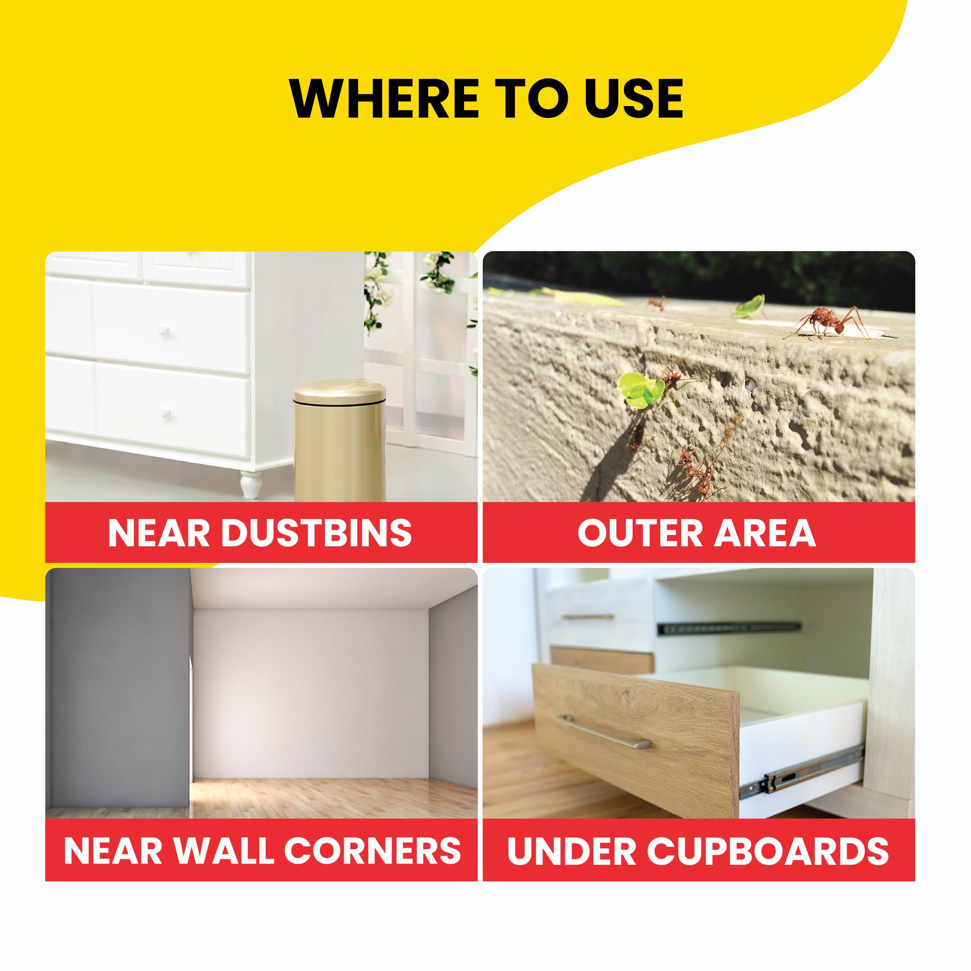 Application Area: Corners, baseboards, kitchen cabinets, storage, under sinks