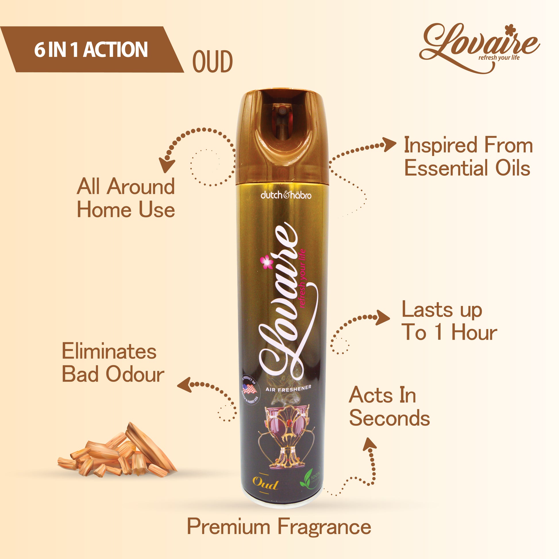 Lovaire Oud Air Freshener brings the timeless luxury of oud to your space, filling it with a rich, exotic, and long-lasting aroma. Designed to eliminate odors instantly, it refreshes your home, office, or car with a sophisticated fragrance. The unique formula ensures a fine mist that lingers, creating a warm and inviting atmosphere. Perfect for those who appreciate deep, woody scents, Lovaire Oud Air Freshener transforms any space into a haven of elegance.