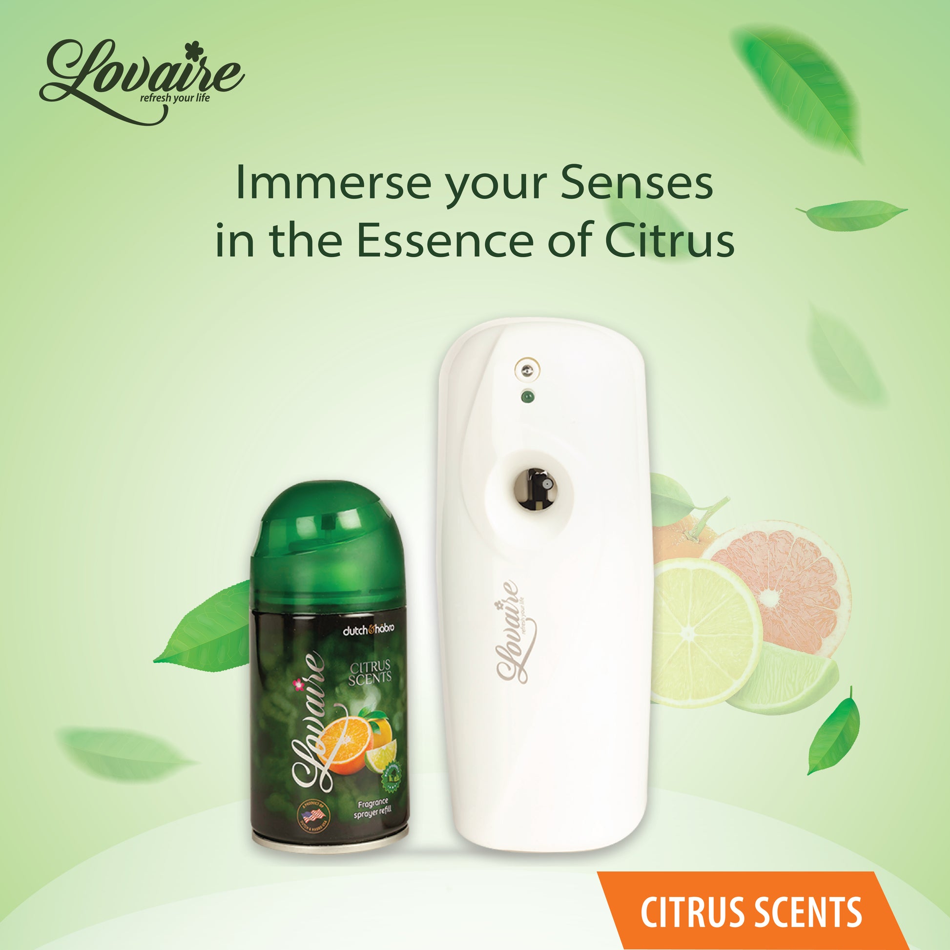 The Lovaire Automatic Combo Pack - Citrus is your ultimate air-freshening solution. This pack includes an automatic air freshener dispenser and citrus-scented refills, ensuring continuous freshness in your home, office, or any space. The dispenser releases a burst of refreshing citrus fragrance at regular intervals, eliminating odors and creating an inviting atmosphere. Designed for convenience, it’s easy to install and refill, making it a hassle-free way to maintain a consistently fresh environment.