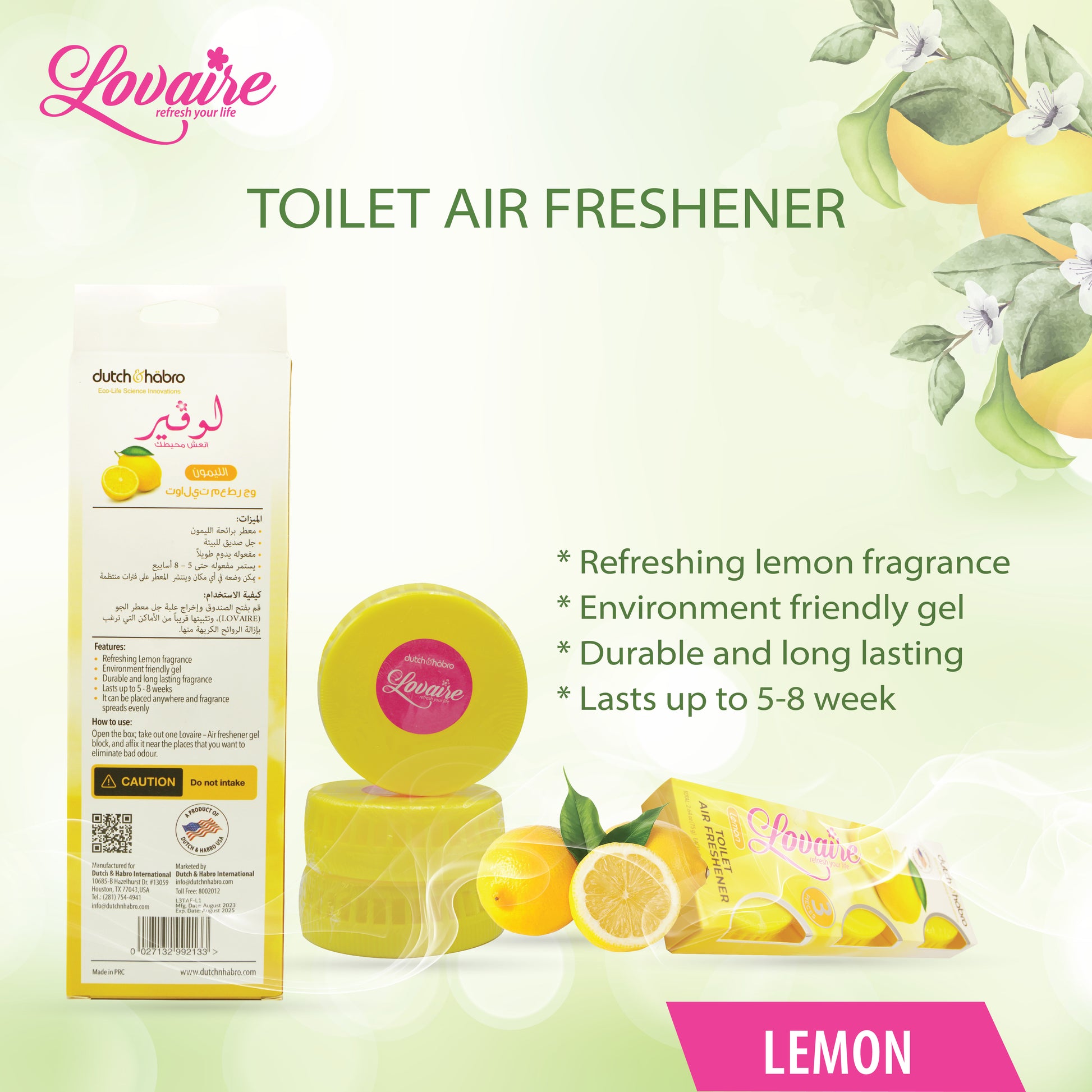 Keep your toilet smelling fresh with the Lovaire Toilet Air Freshener - Lemon 3 PCS. Infused with a zesty lemon fragrance, this long-lasting gel-based freshener neutralizes odors and fills your space with a clean, citrusy aroma. Designed for continuous freshness, each unit lasts up to 5 weeks, making it an ideal choice for maintaining a pleasant bathroom environment.