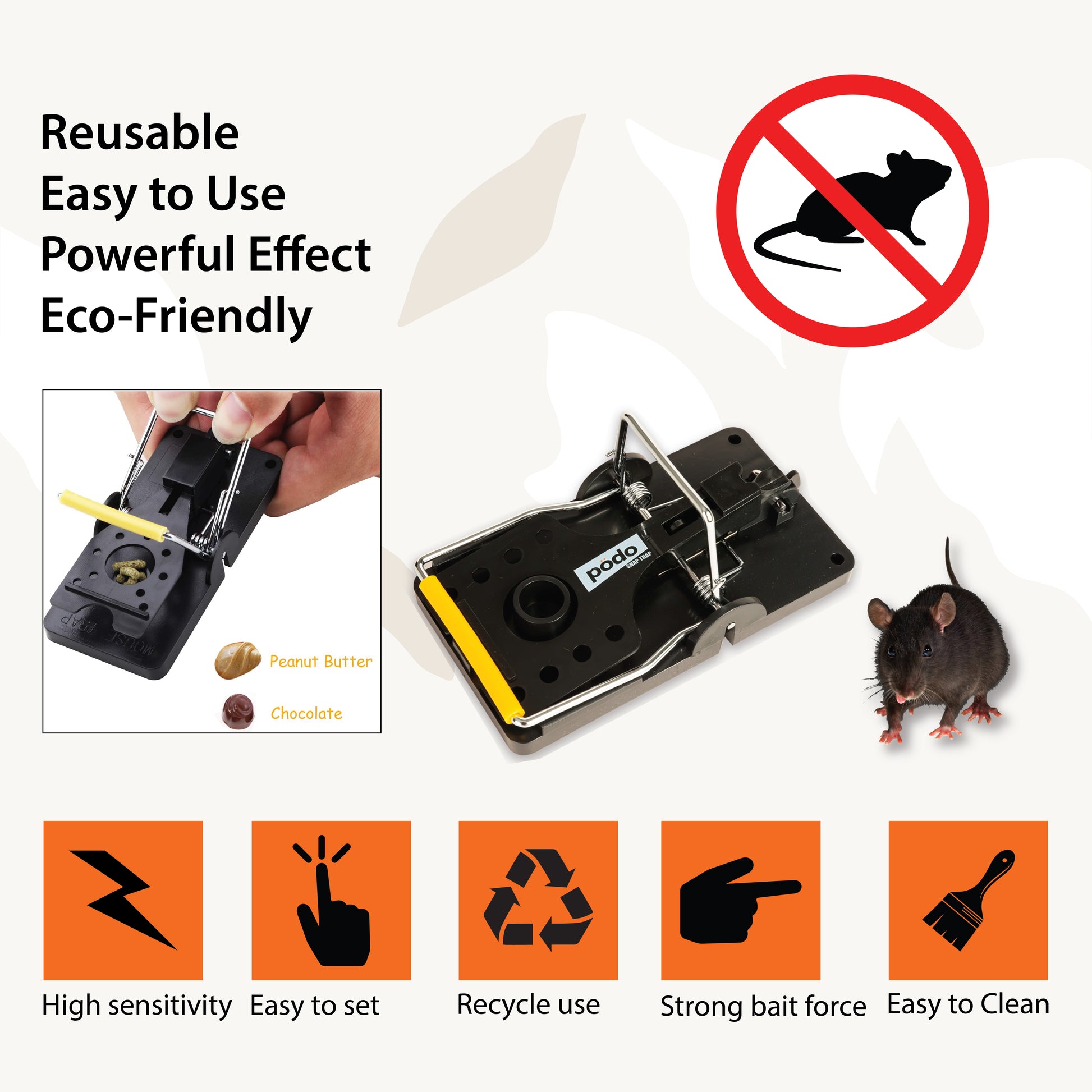 The Podo Snap Trap is a high-performance rodent control solution designed for quick and humane trapping. With a powerful spring mechanism and high-sensitivity trigger, it ensures instant and secure capture of mice and rats. The no-touch disposal feature allows for safe and hygienic handling, while the durable, reusable design makes it a cost-effective pest control solution. Ideal for homes, warehouses, restaurants, and garages, this trap is an effective, chemical-free alternative for managing rodent problems.